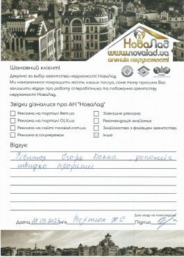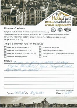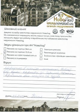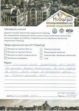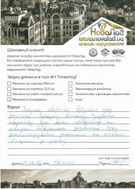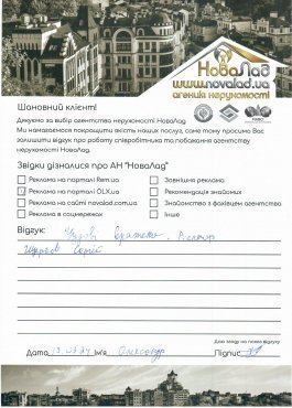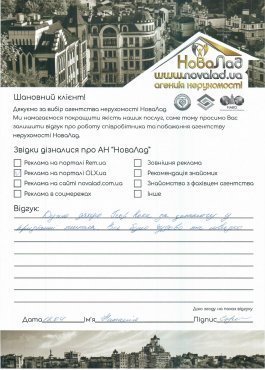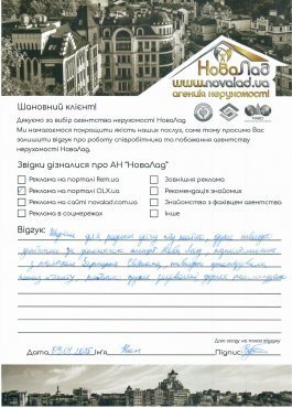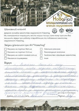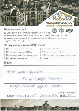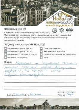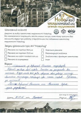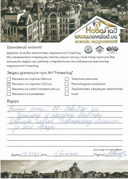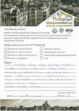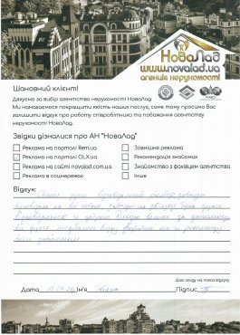 Дякую анегції НоваЛад за допомогу у продажу квартири. Особлива подяка Зарицькому Микиті за його працю.