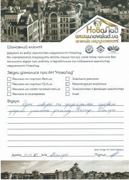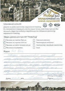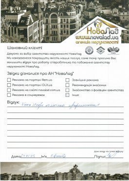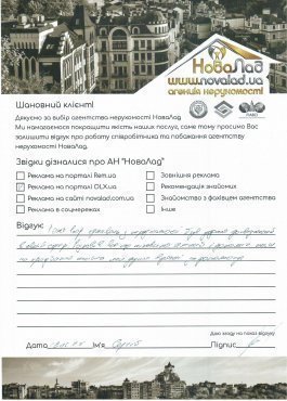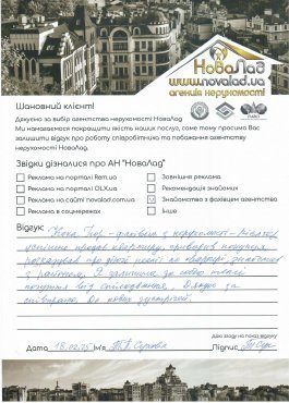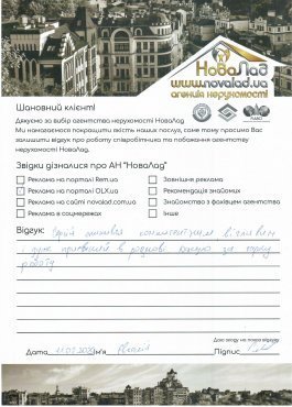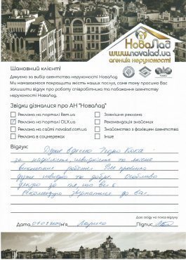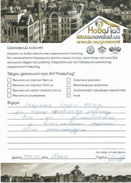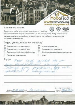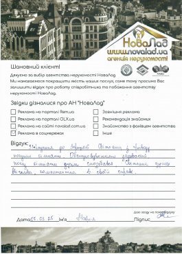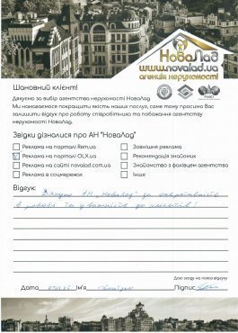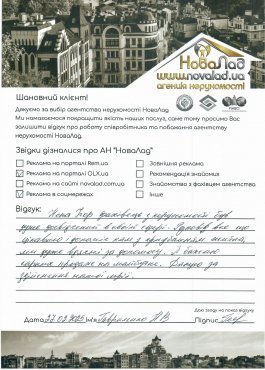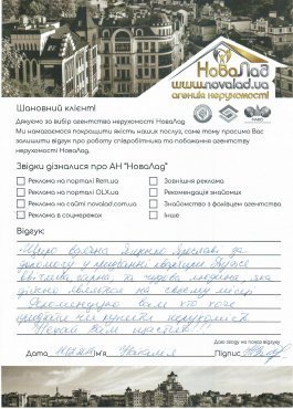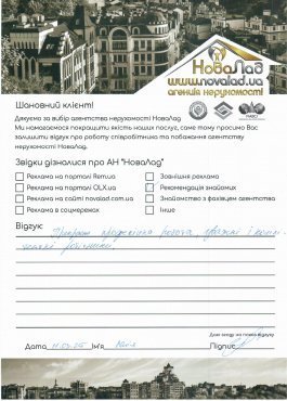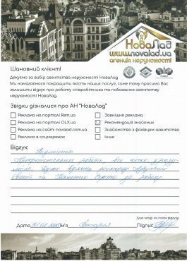 Дякую АН «НоваЛад» за оперативність в роботі та уважність до клієнтів!